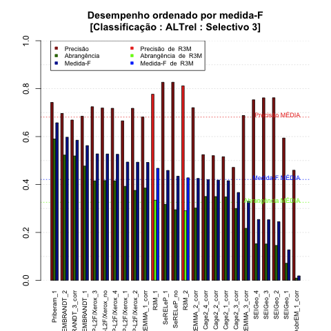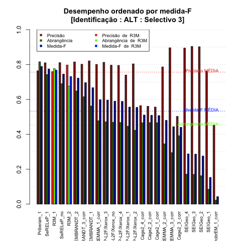 O sistema R3M participou no cenário Selectivo3 e foi também avaliado no cenário total e nos cenários dos outros participantes. Todos os cenários estão descritos em Cenários no Segundo HAREM.