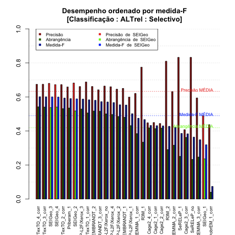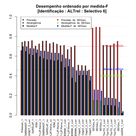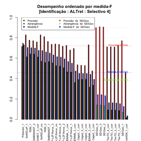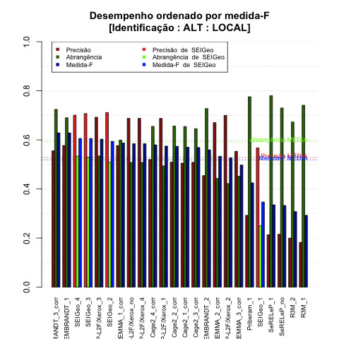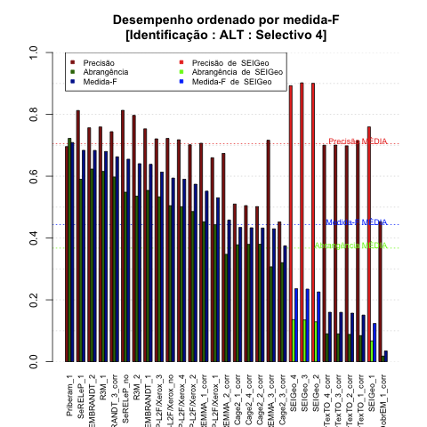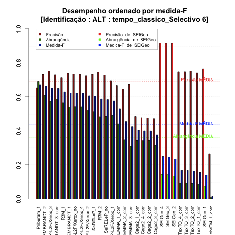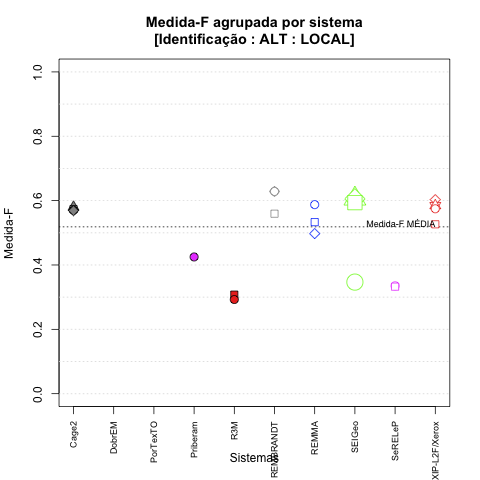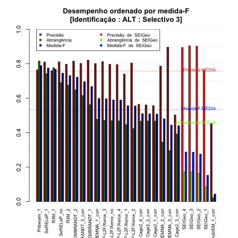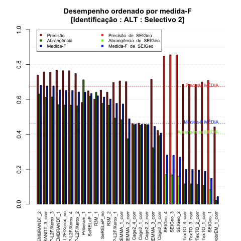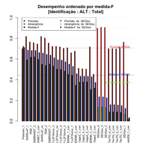 | Saída | Posição (em 29) | Precisão | Abrangência | Medida-F | Sobre-ger | Sub-ger | TotalEMCD | TotalEMSis |