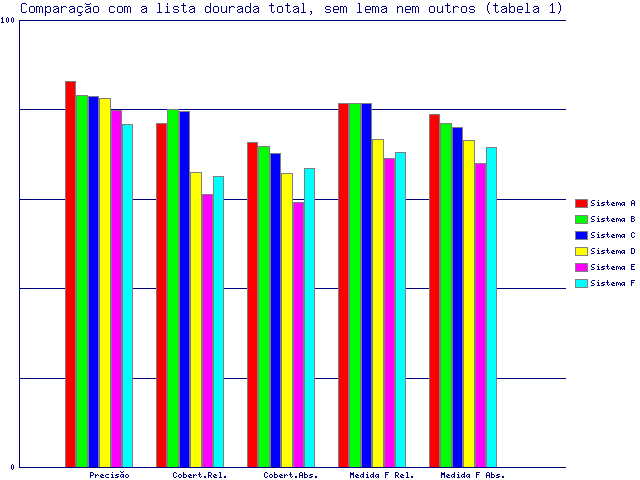 | Tabela 1: Comparação com a lista dourada total, sem lema nem outros | ||||||||||||