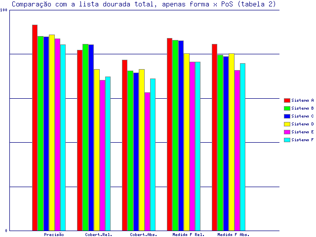 | Tabela 2: Comparação com a lista dourada total, apenas forma x PoS | ||||||||||||