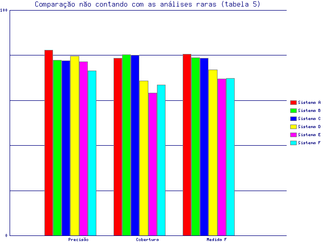 | Tabela 5: Comparação com a lista dourada total, sem lema nem outros, não contando com as análises raras | |||||||