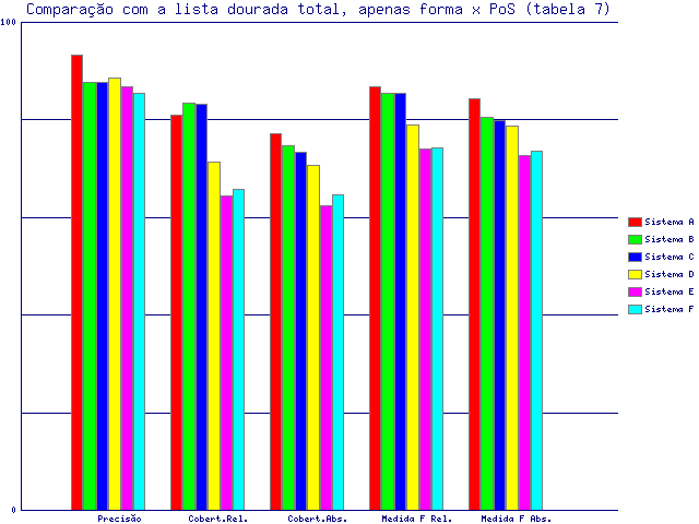 | Tabela 7: Comparação com a lista dourada total, apenas forma x PoS | ||||||||||||