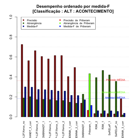 | Saída | Posição (em 14) | Precisão | Abrangência | Medida-F | Sobre-ger | Sub-ger | TotalEMCD | TotalEMSis |