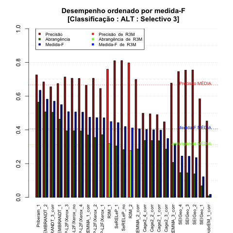 O sistema R3M participou no cenário Selectivo3 e foi também avaliado no cenário total e nos cenários dos outros participantes. Todos os cenários estão descritos em Cenários no Segundo HAREM.