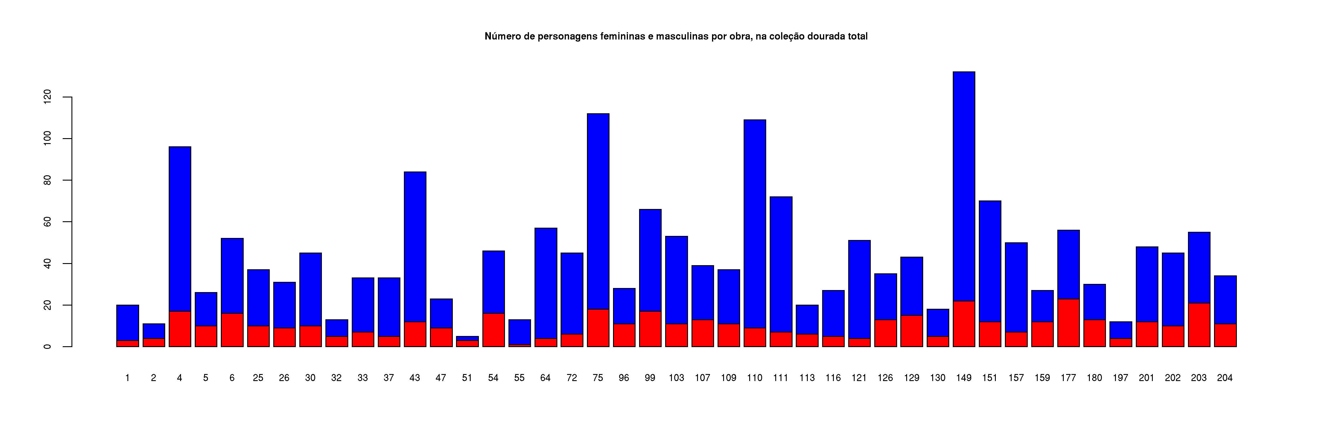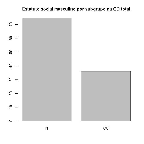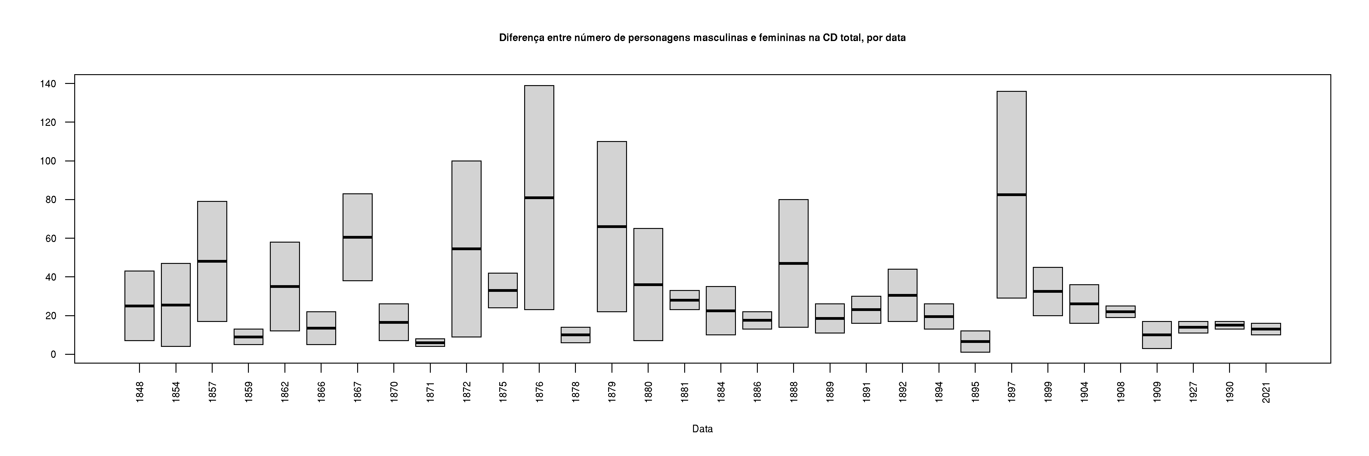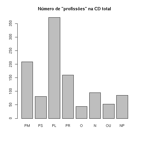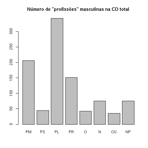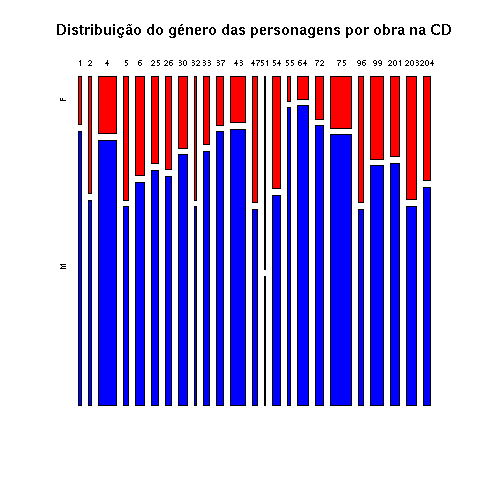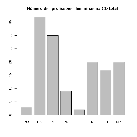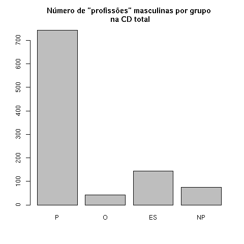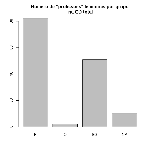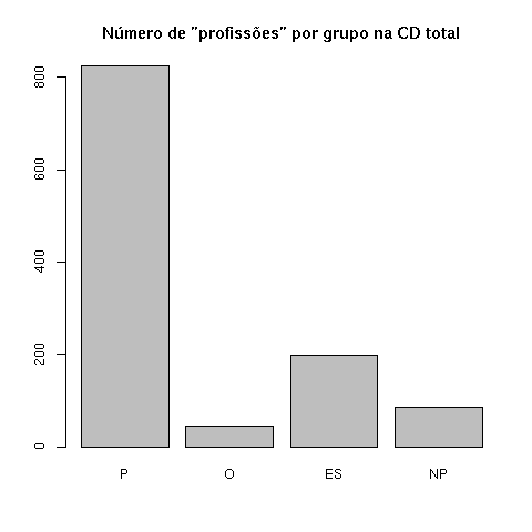 No caso das personagens masculinas na CD total, 633 em 1504 não têm profissão, ocupação ou estatuto social, ou seja, 42,1%. No caso das personagens femininas, o mesmo ocorre para 309 em 440, ou seja, 70,2%.