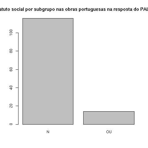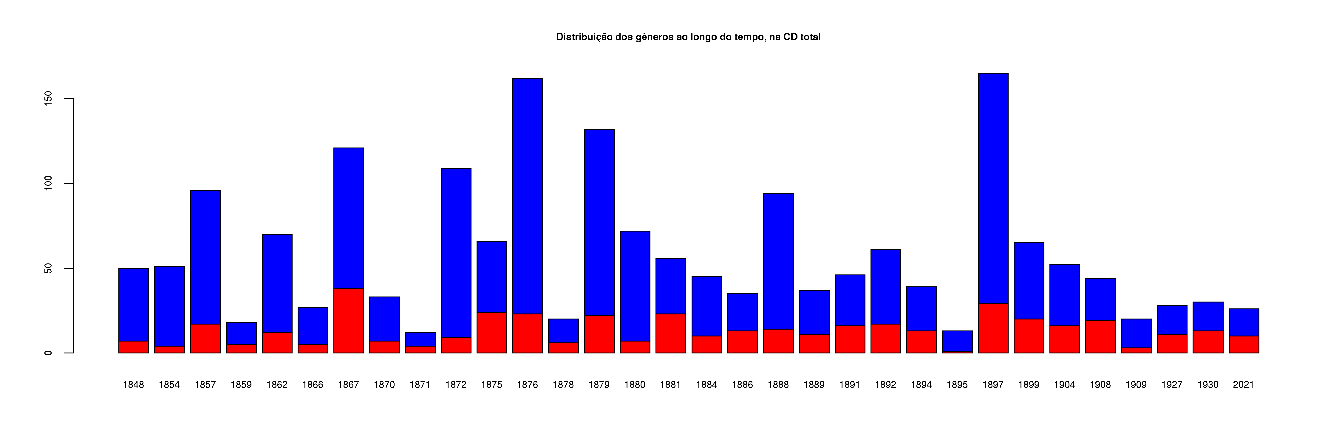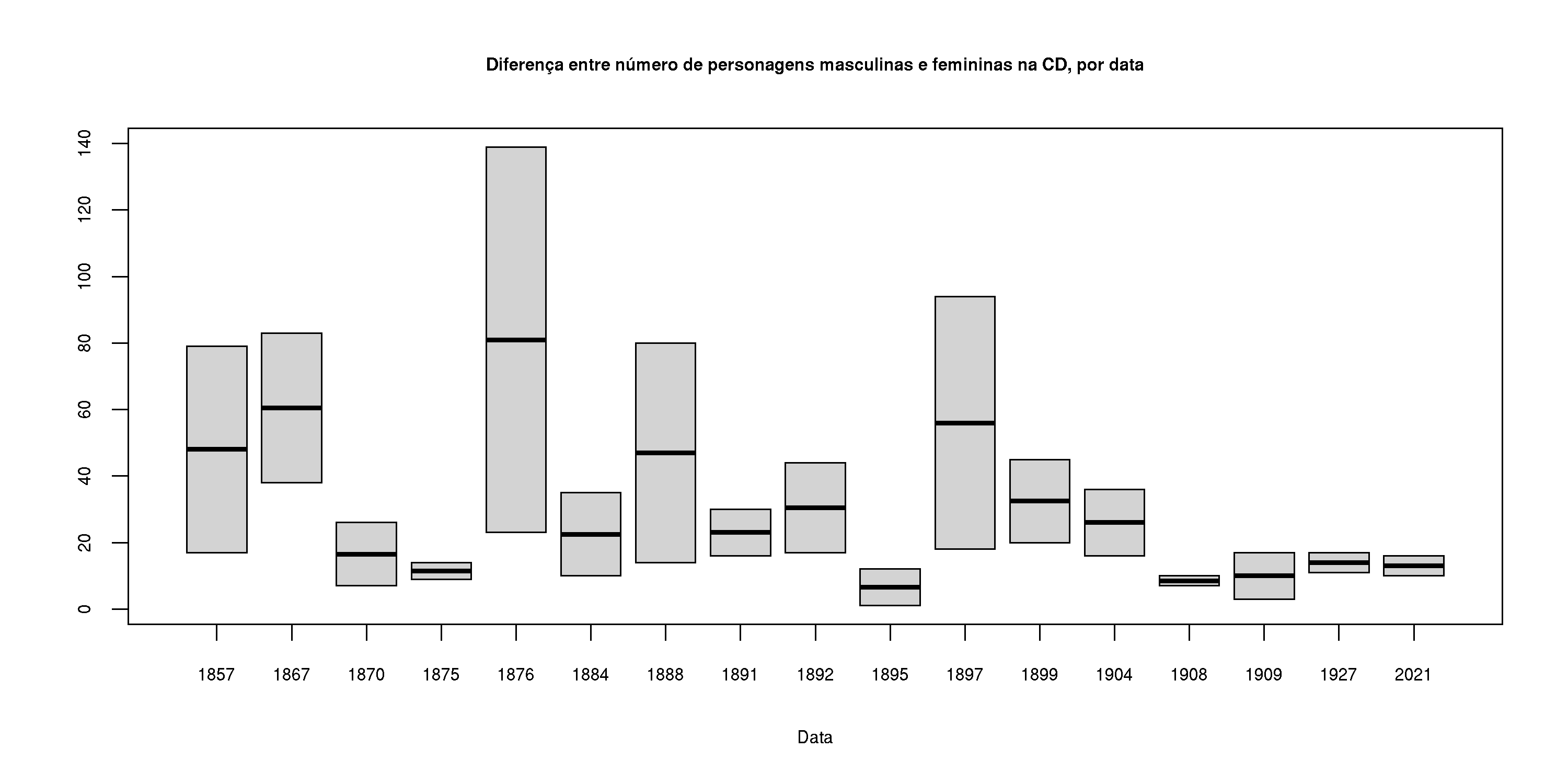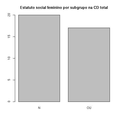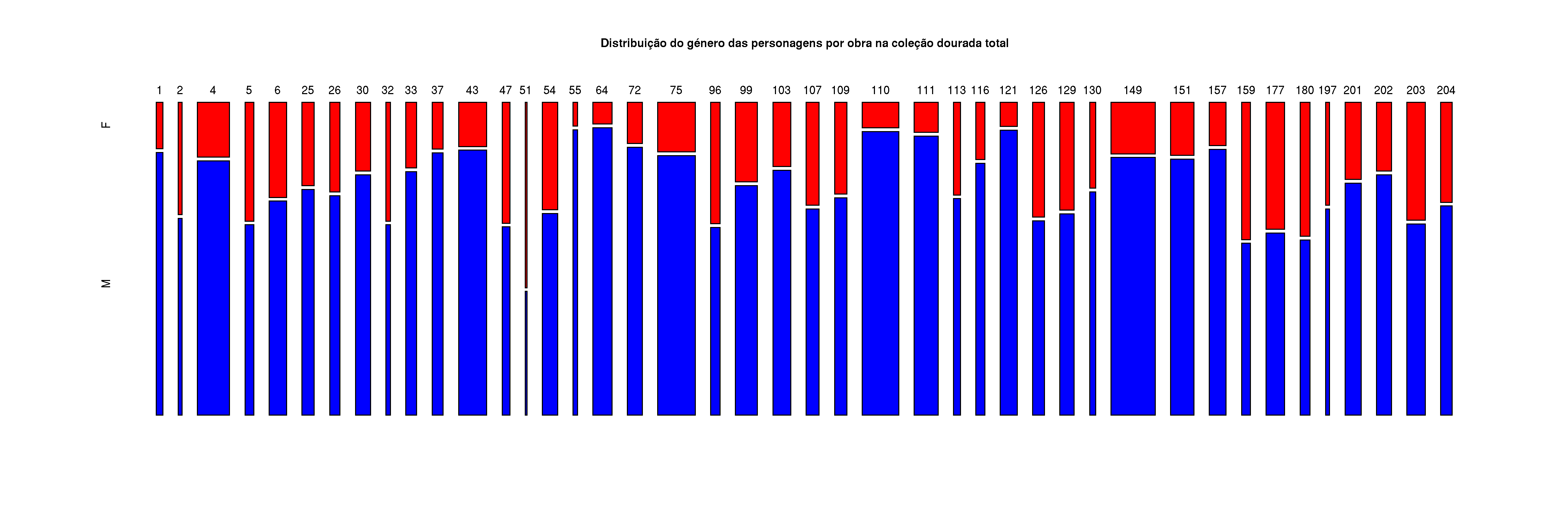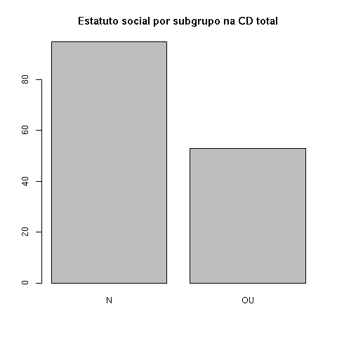 No caso das personagens masculinas na CD total, 633 em 1504 não têm profissão, ocupação ou estatuto social, ou seja, 42,1%. No caso das personagens femininas, o mesmo ocorre para 309 em 440, ou seja, 70,2%.