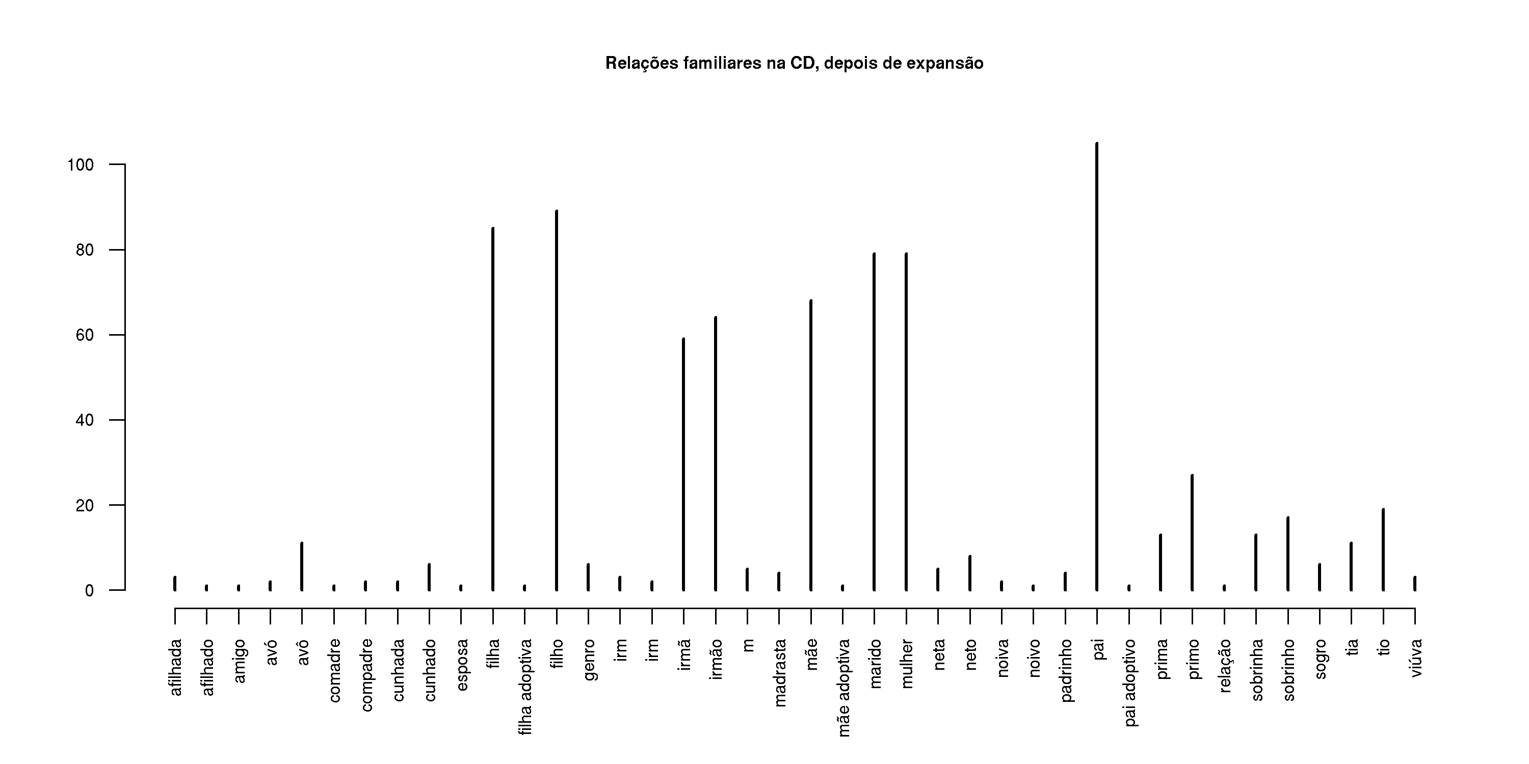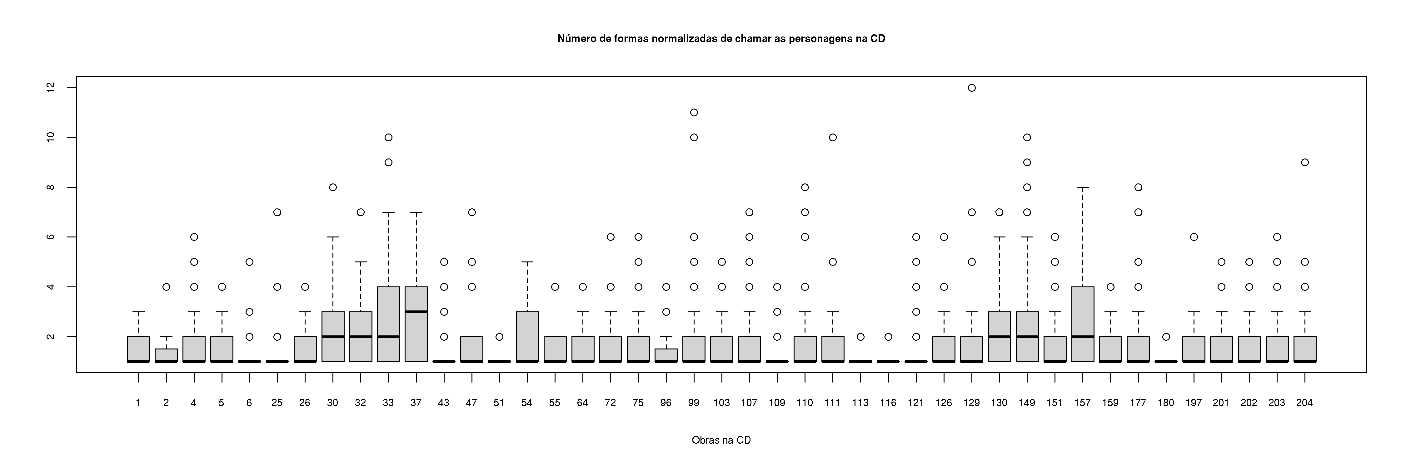 Usando as 45 obras analisadas por leitura integral, 416 relações foram encontradas.