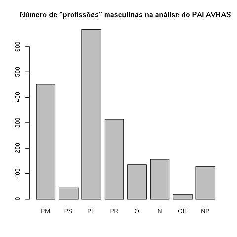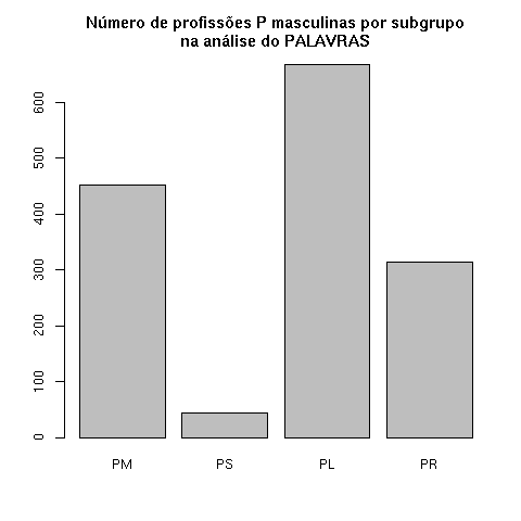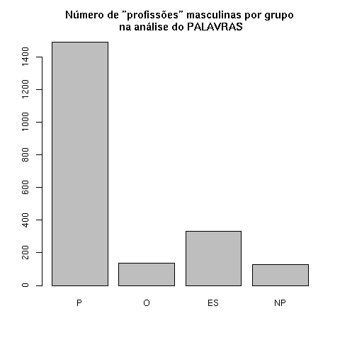As profissões masculinas identificadas pelo PALAVRAS, por grupo: