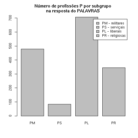 As profissões brasileiras identificadas pelo PALAVRAS, por grupo: