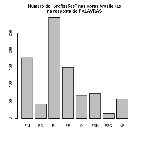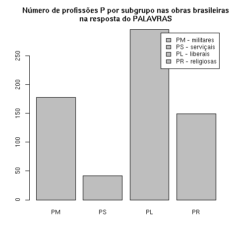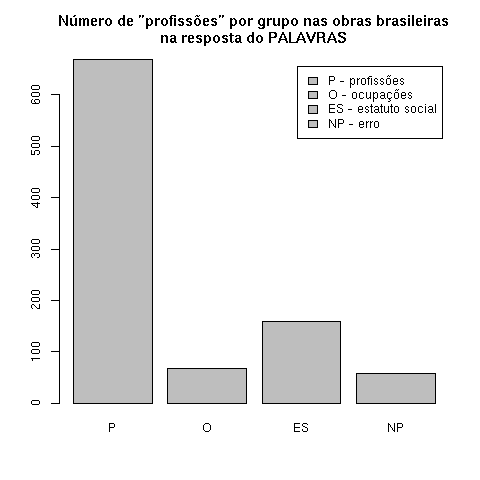 Se separarmos a literatura brasileira da portuguesa, temos respetivamente 330 e 364 profissões distintas.