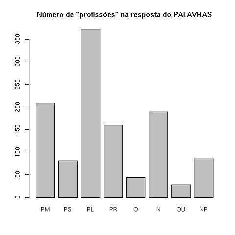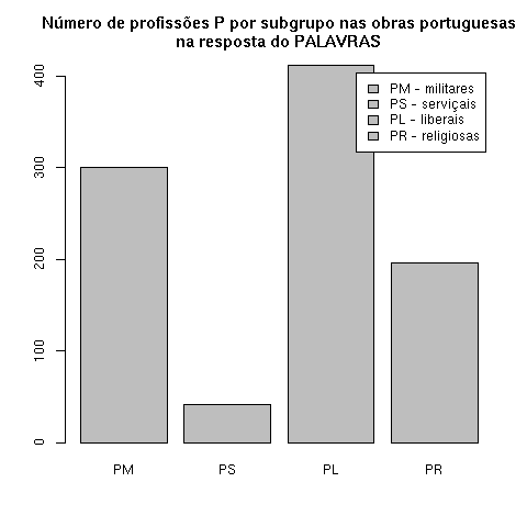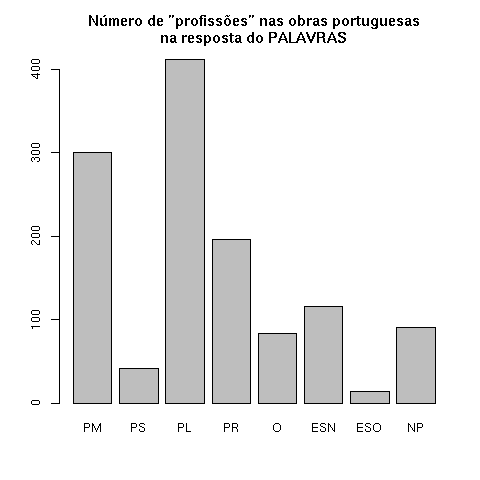 As profissões portuguesas identificadas pelo PALAVRAS, por grupo: