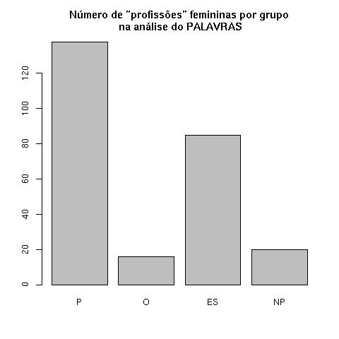 As profissões femininas identificadas pelo PALAVRAS, por grupo: