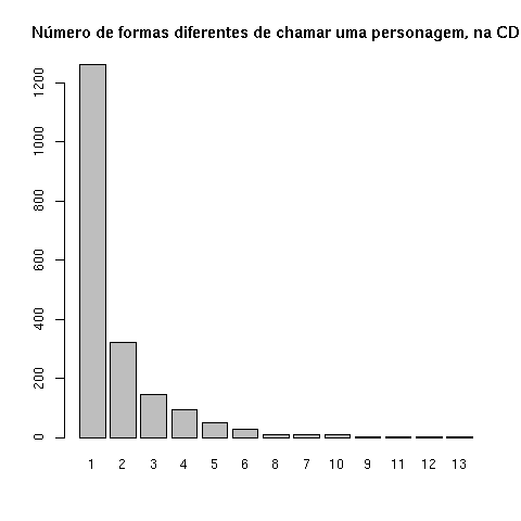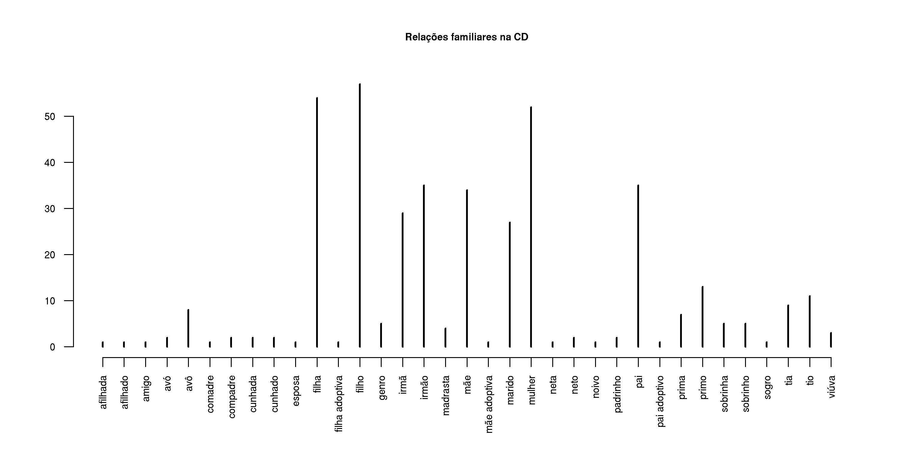 No caso das personagens masculinas na CD, 337 em 777 não têm profissão, ocupação ou estatuto social, ou seja, 43,4%. No caso das personagens femininas, o mesmo ocorre para 175 em 237, ou seja, 73,8%.