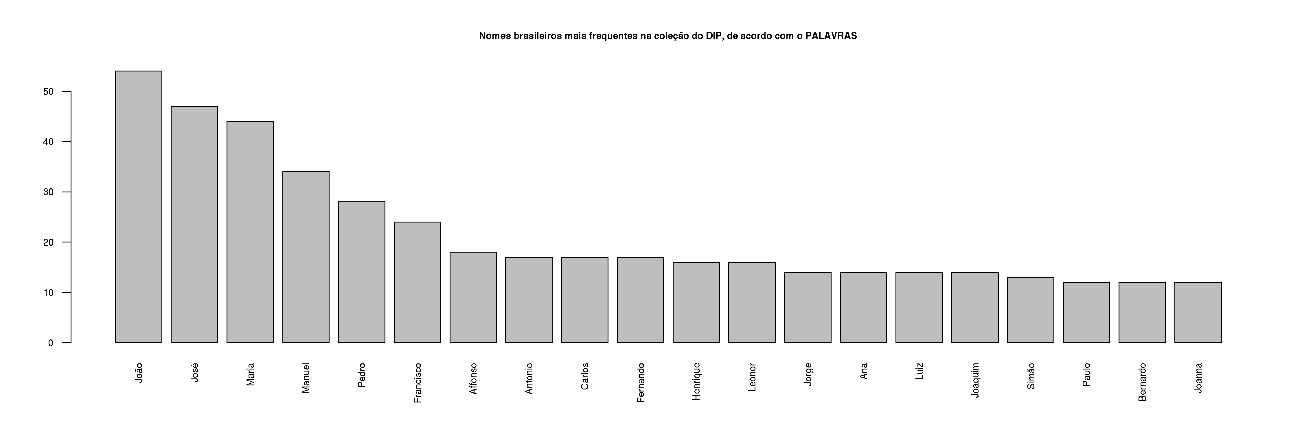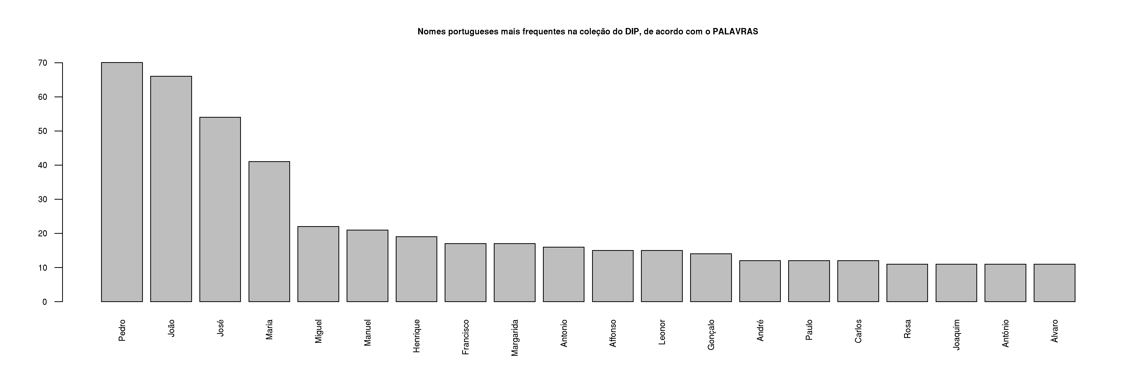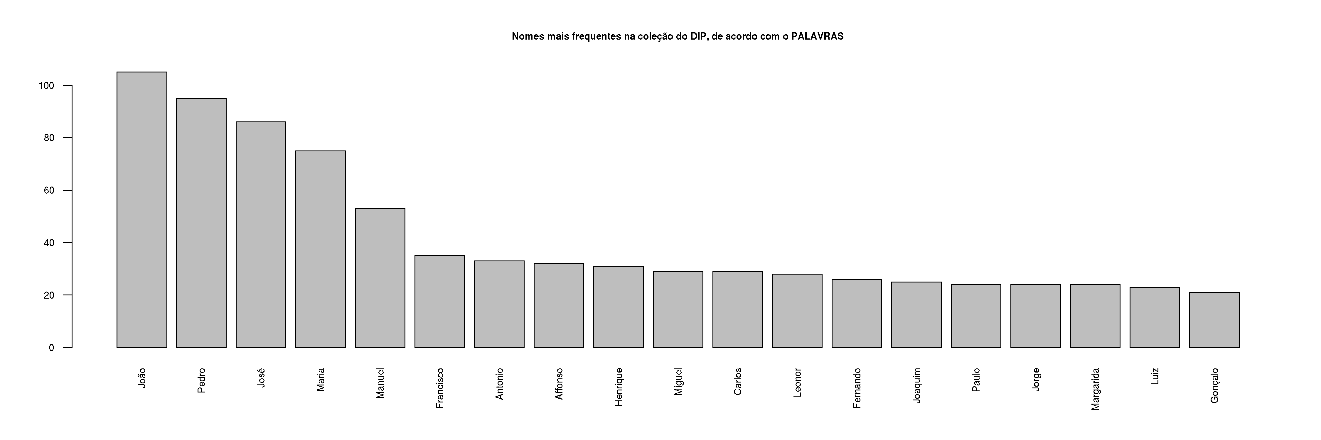 Os nomes mais frequentes das personagens, de acordo com o PALAVRAS, são: