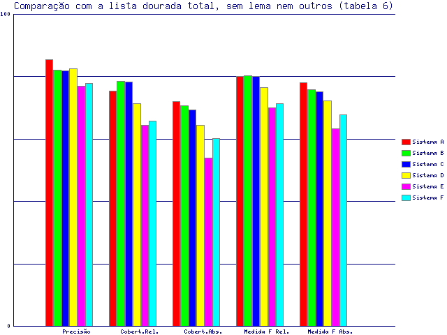 | Tabela 6: Comparação com a lista dourada total, sem lema nem outros | ||||||||||||