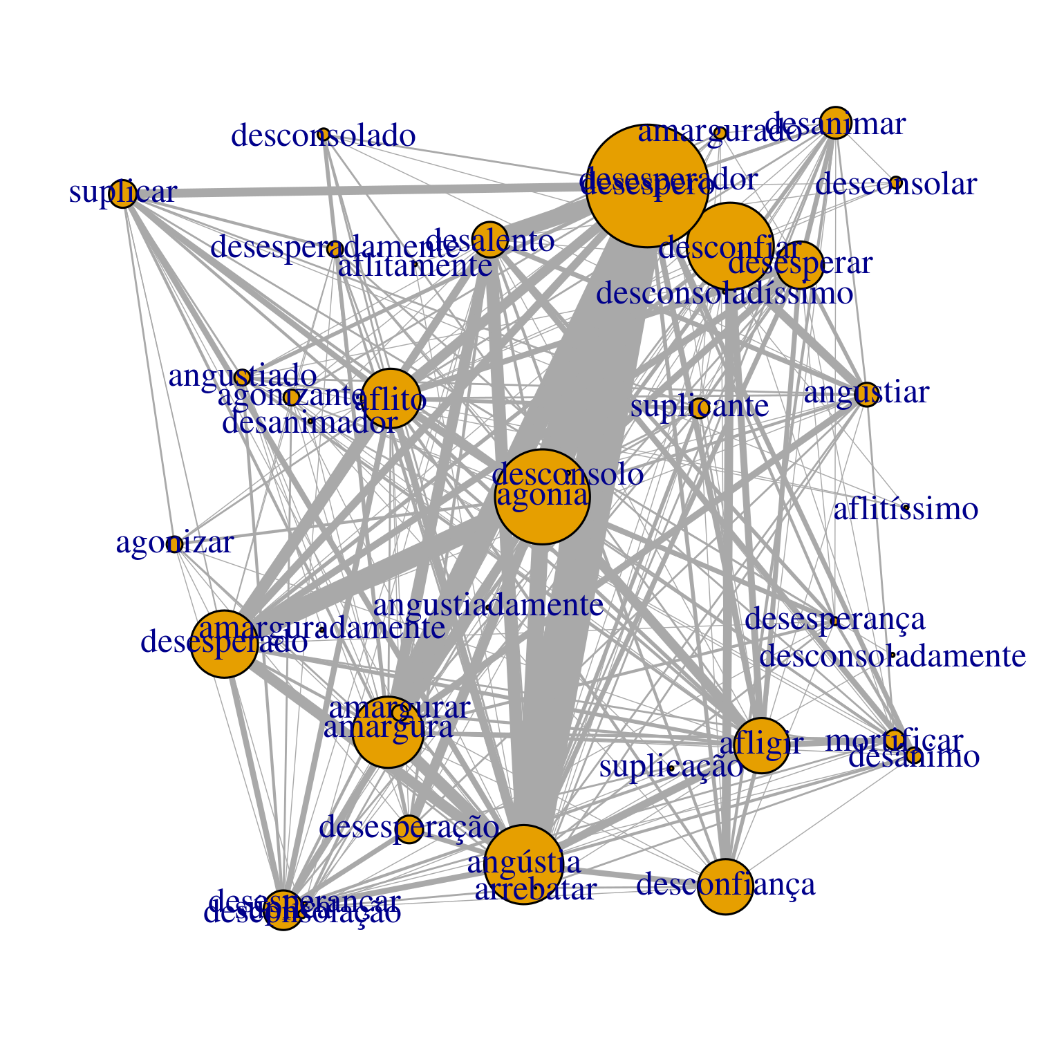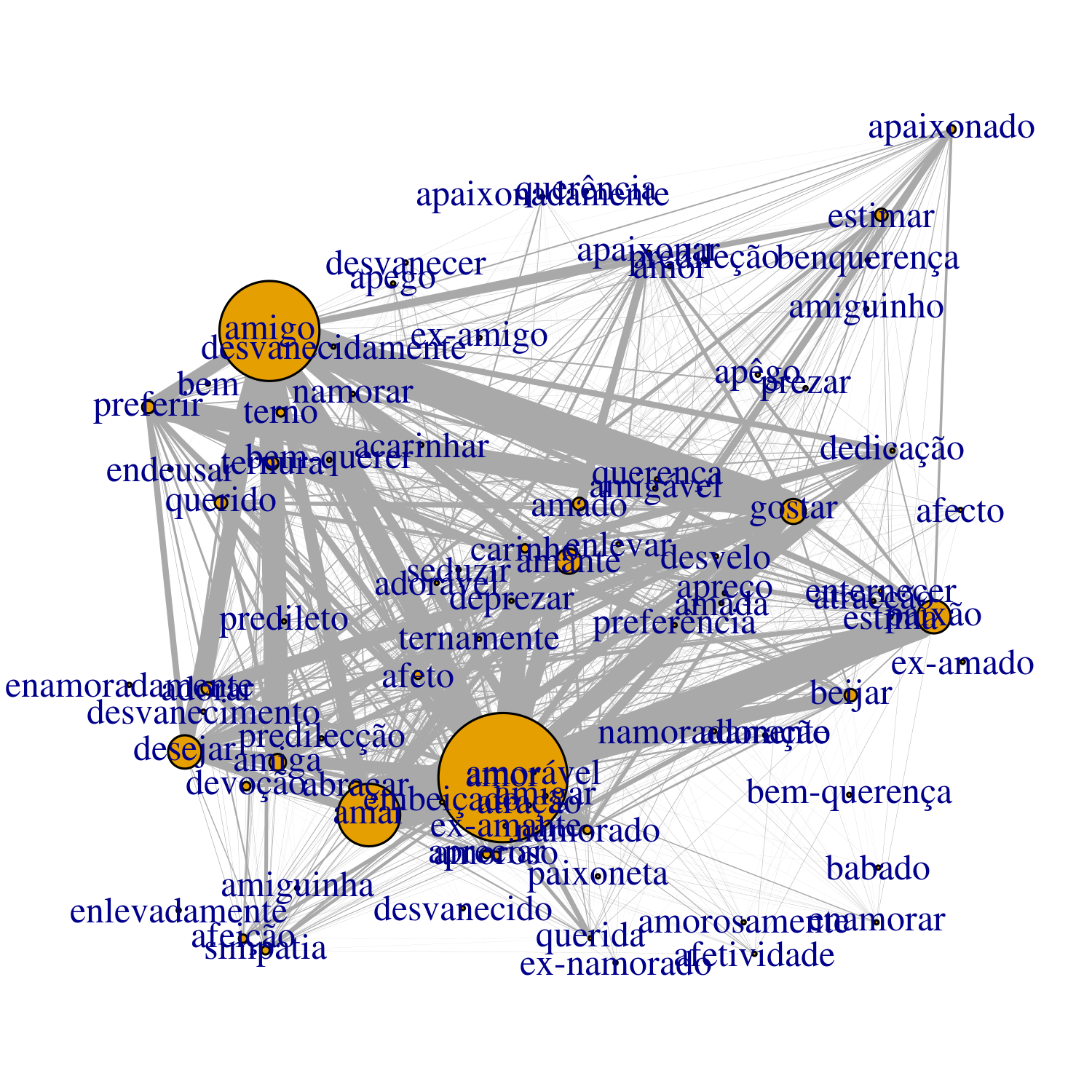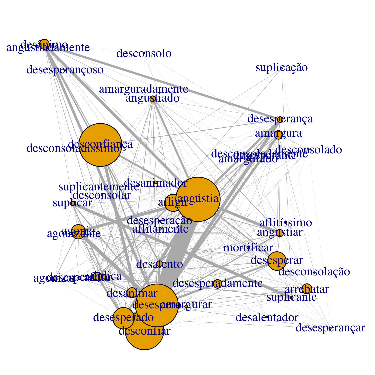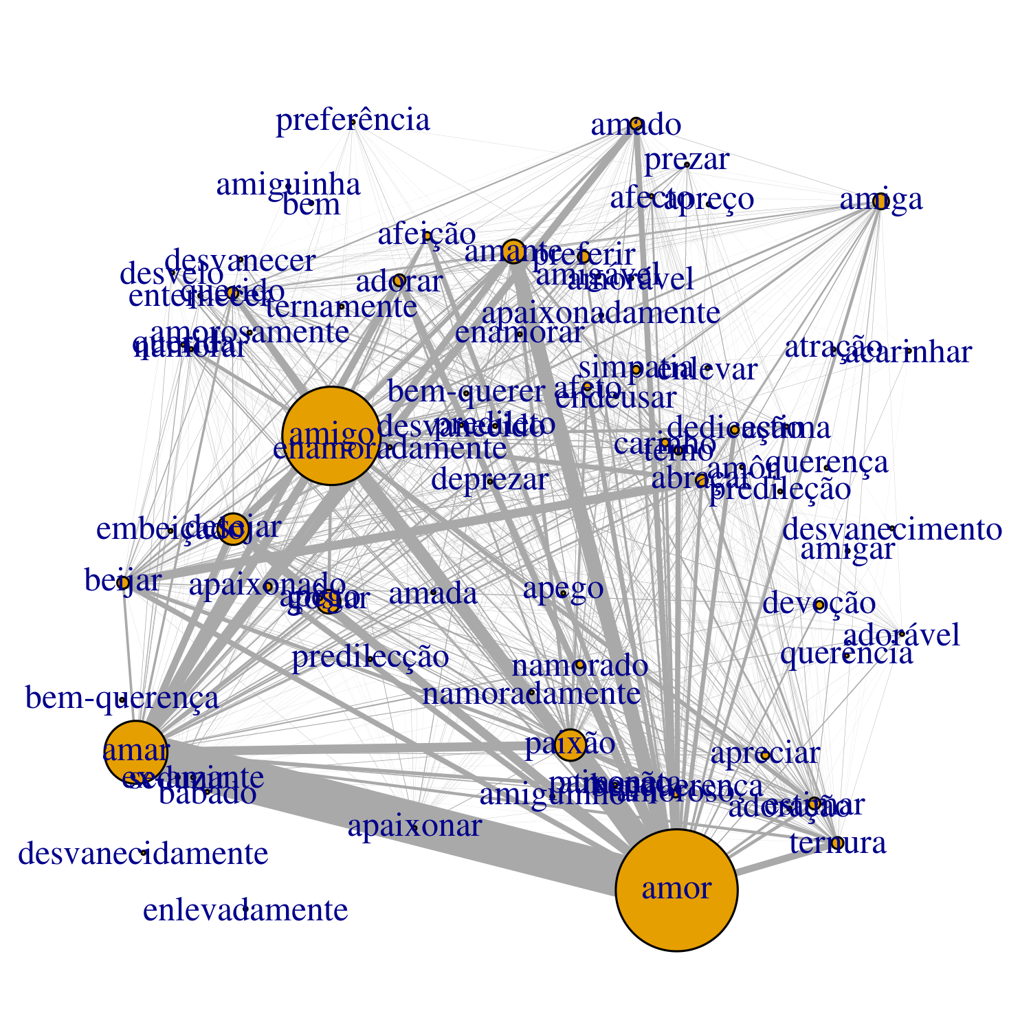 cat listaLemasAmorTodos | acdc_melhora_lista_freq_lemas.pl > listaAmorIni acdc_igraph_calcula_pesos.pl < listaAmorIni > comAmorTodosPesos iconv -f iso-8859-1 -t utf8 comAmorTodosPesos > comAmorTodosPesos.R cat listaLemasDesesperoTodos | acdc_melhora_lista_freq_lemas.pl > listaDesesperoIni acdc_igraph_calcula_pesos.pl < listaDesesperoIni > comDesesperoTodosPesos iconv -f iso-8859-1 -t utf8 comDesesperoTodosPesos > comDesesperoTodosPesos.RArranjam-se os ficheiros listaDesespero e listaAmor, editados a partir da procura no AC/DC.