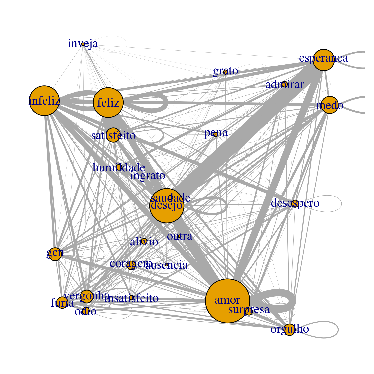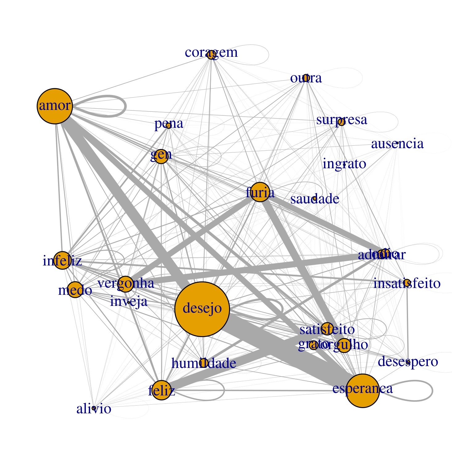 grep -v TE lexicoTODOS | grep -v DESAP | grep -v cjt > lexicoEmosTodos.R grep -v TE lexicoLITERATECA | grep -v DESAP | grep -v cjt > lexicoEmosLiterateca.Re para calcular os pesos, que se refletem na espessura dos arcos que juntam as emoções